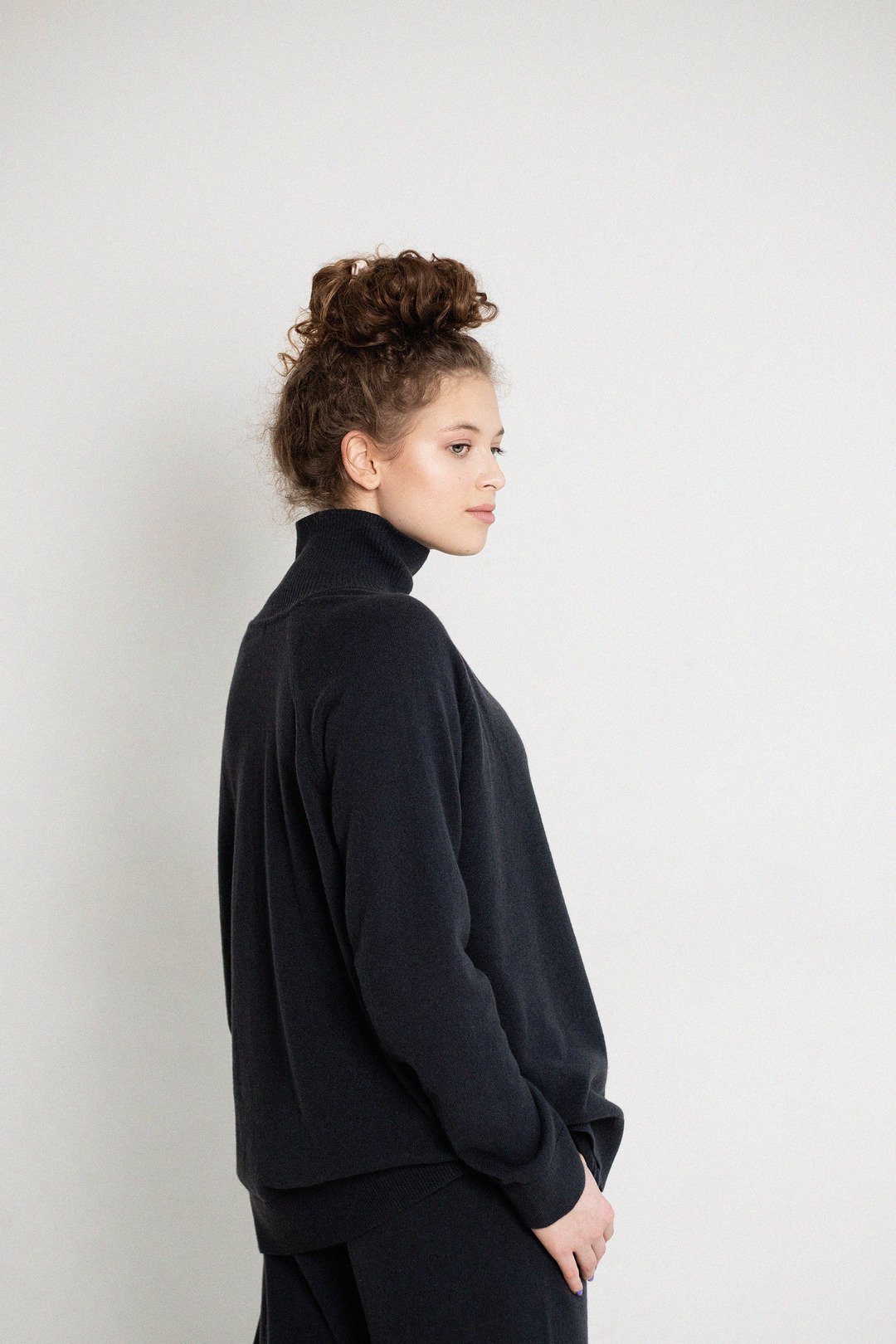 Pagamintas iš 100% kašmyro, su reglano rankovėmis ir neatlenkiamu kaklu, šis megztinis yra jaukus ir universalus jūsų spintos akcentas.