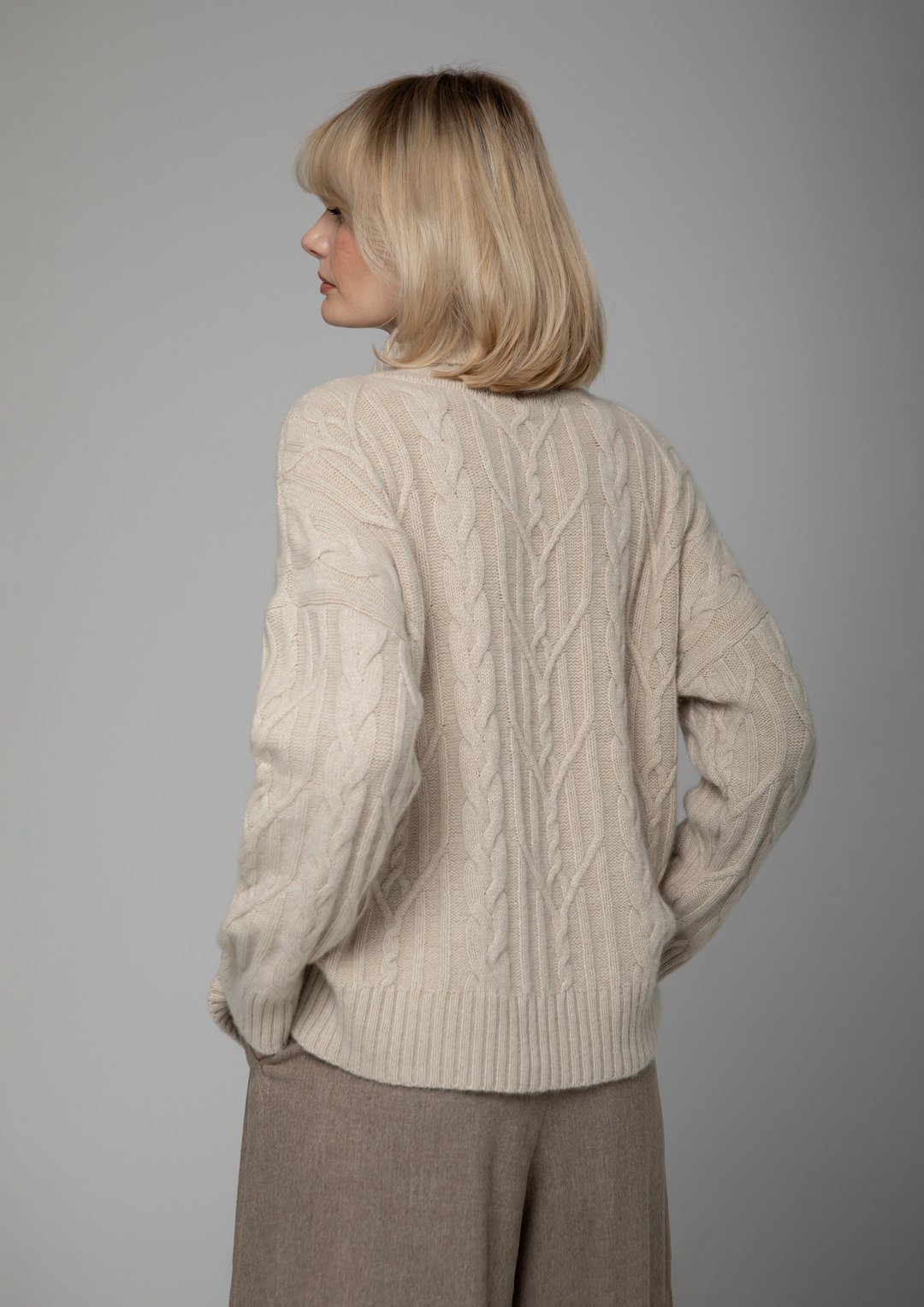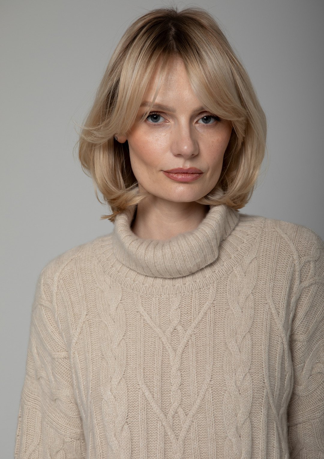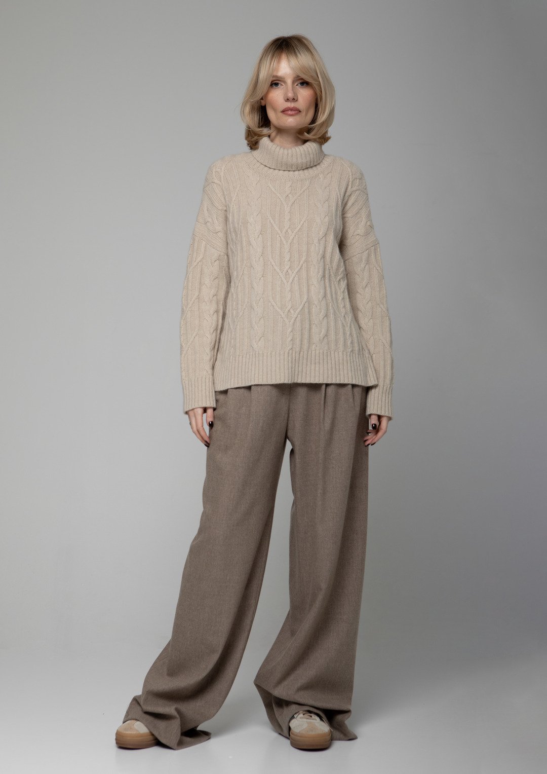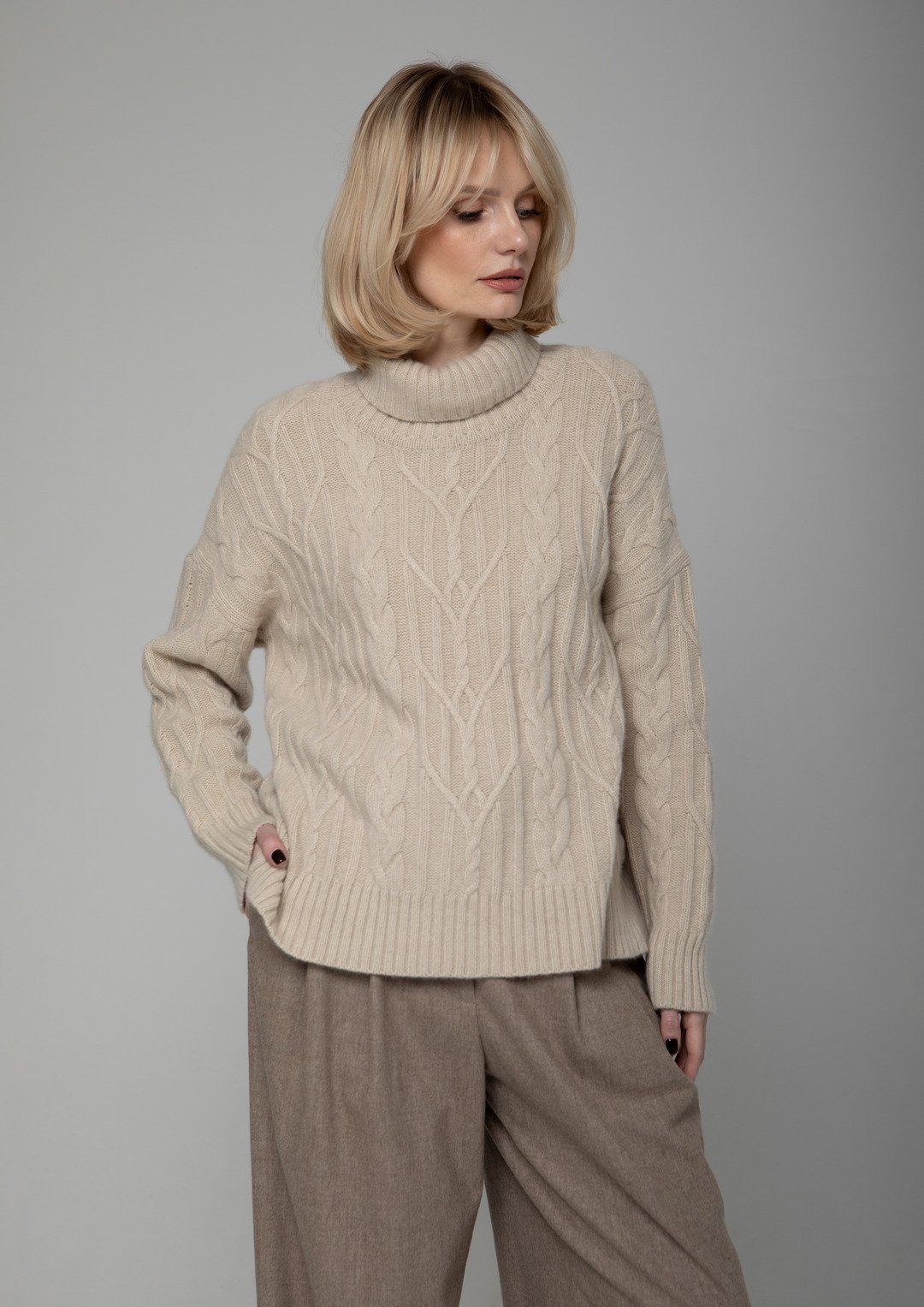 Šiltas, jaukus megztinis su elegantiškomis pynėmis ir atlenkiamu aukštu kaklu suteiks išskirtinį komfortą net ir šalčiausiomis dienomis.
